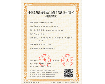 中國設(shè)備維修安裝企業(yè)能力等級證書